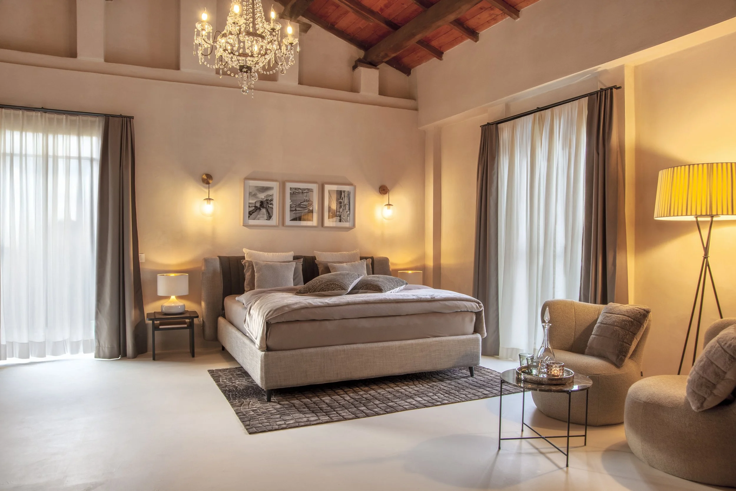 Unser Juwel, das den bezaubernden Charme des Piemonts widerspiegelt: Das grosszügige Zimmer Luna mit 62 m², inklusive privater Terrasse und wunderschönem Badezimmer, vereint auf elegante Weise modernen Komfort und erlesenen Stil.