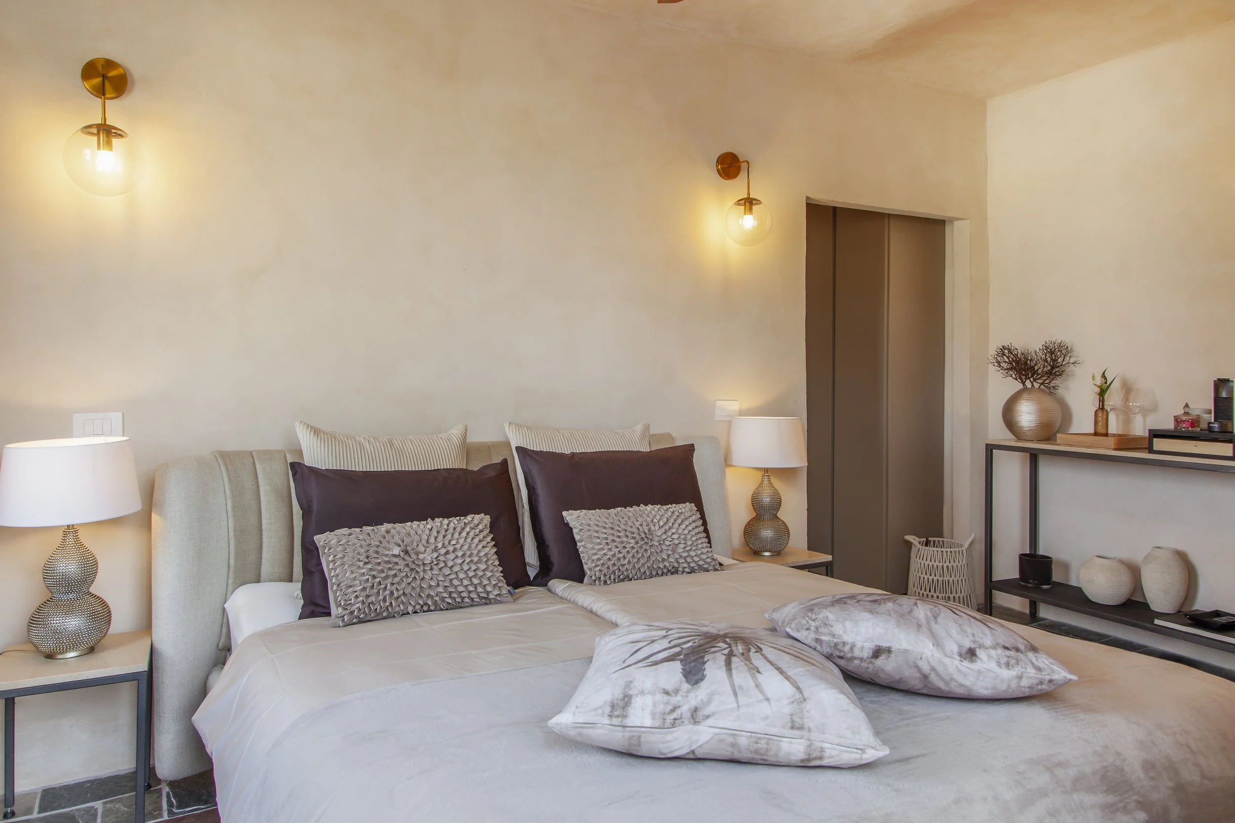 Im Obergeschoss gelegen, bietet es eine exklusive Terrasse mit Privatsphäre sowie direkten Zugang zum Pool und Garten. Auf Wunsch wird das Frühstück auf der Terrasse serviert.